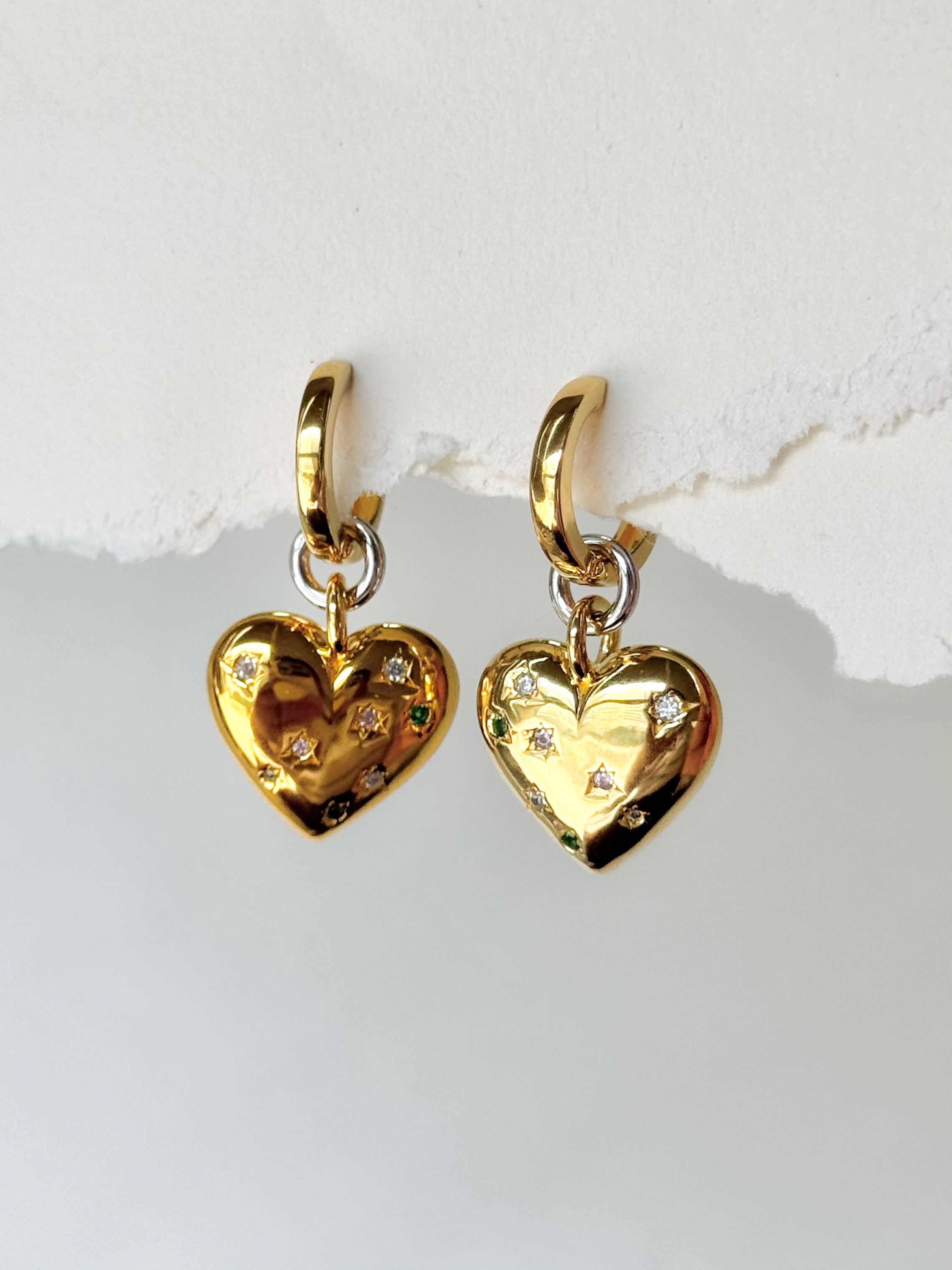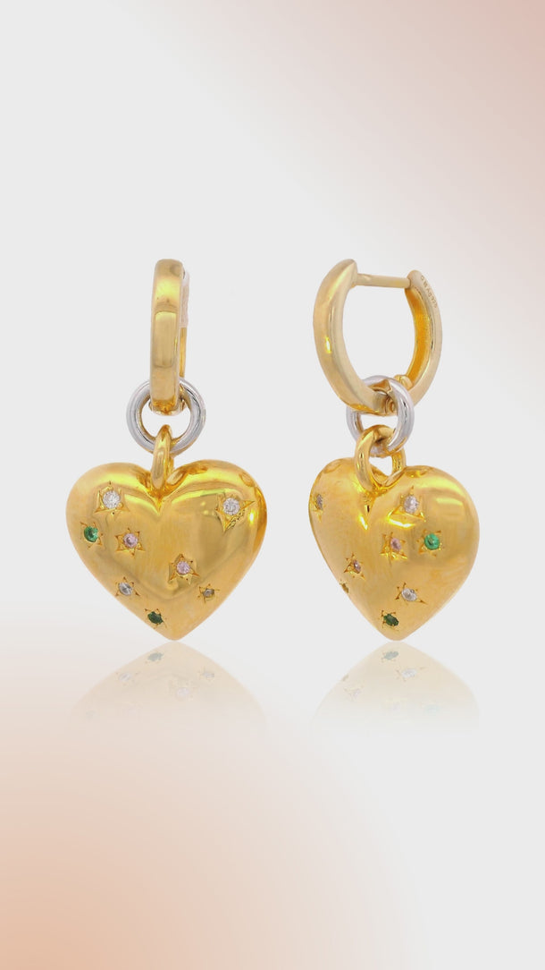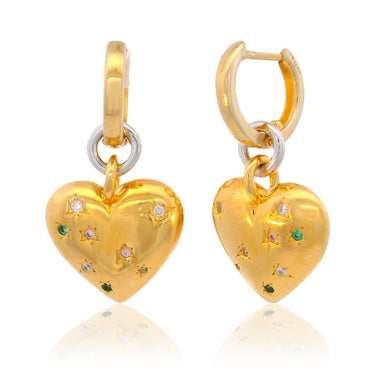 Elevate your style with the Pop Goes My Heart Earrings — a luxurious expression of playful elegance. A radiant gold heart takes centre stage, illuminated with a vibrant mosaic of white, pink, and green cubic zirconias that catch the light with every movement.