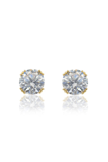 At the heart of each earring is a brilliant 6.5mm cubic zirconia, secured by a triple-prong and rail setting for added durability. A hidden halo of 12 micro-set stones wraps delicately beneath the centre, enhancing the glow with every movement and adding an exquisite touch of intrigue to a classic silhouette.